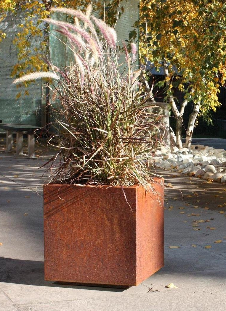 Möchten Sie Ihre Cortenstahl-Pflanzgefäße leicht bewegen können? Dann ist es möglich, Füße oder Räder unter Ihrem Pflanzgefäß anfertigen zu lassen. Die beiden Fotos unten vermitteln einen Eindruck.