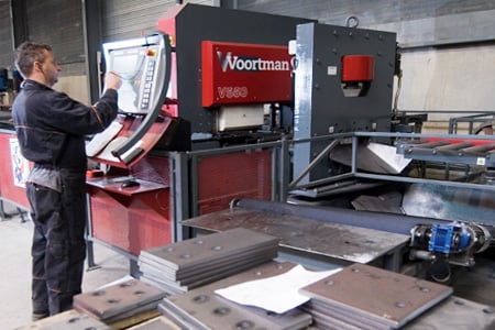 Wij beschikken over een moderne pons-knip machine met 100 ton capaciteit hetgeen resulteert tot het knippen van platen 25 dik en ponsen van gaten tot en met 31 mm.